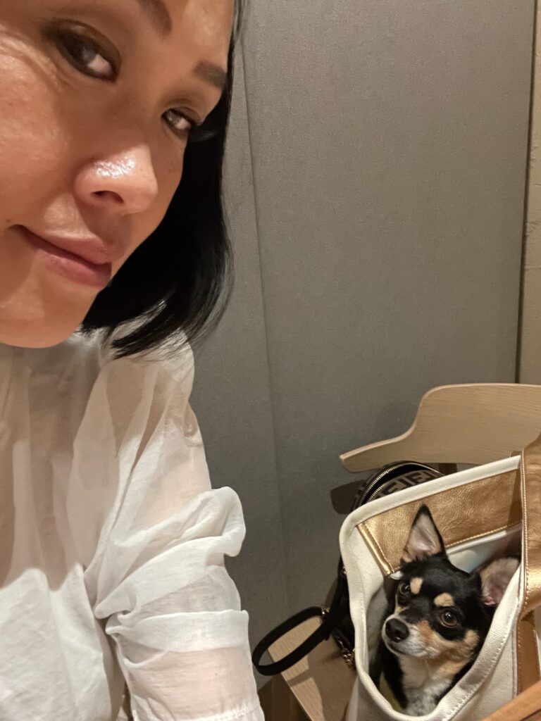 Important note: Chance my trained service animal. Out of respect for public establishments and fellow diners, he remains in his carrier the entire time we are indoors. For quick photos, he may step out briefly, but he goes right back into the bag — where he happily relaxes while his humans enjoy their meal. Traveling responsibly with a dog isn’t just about access; it’s about consideration, preparation, and making the experience comfortable for everyone involved.