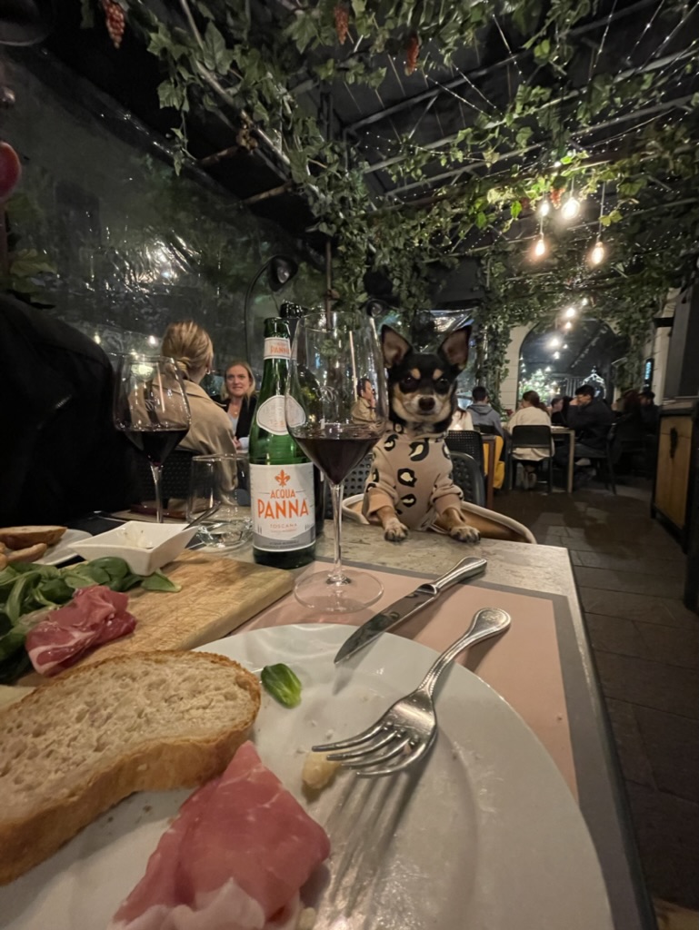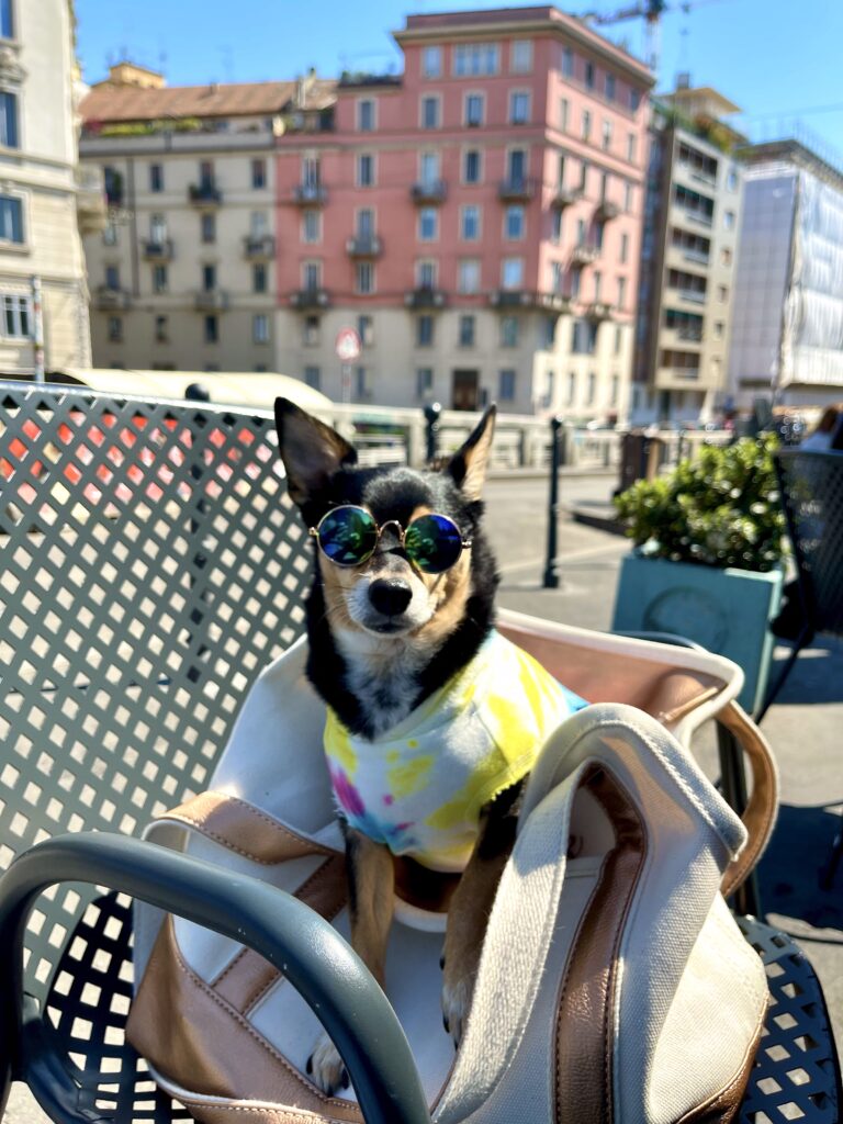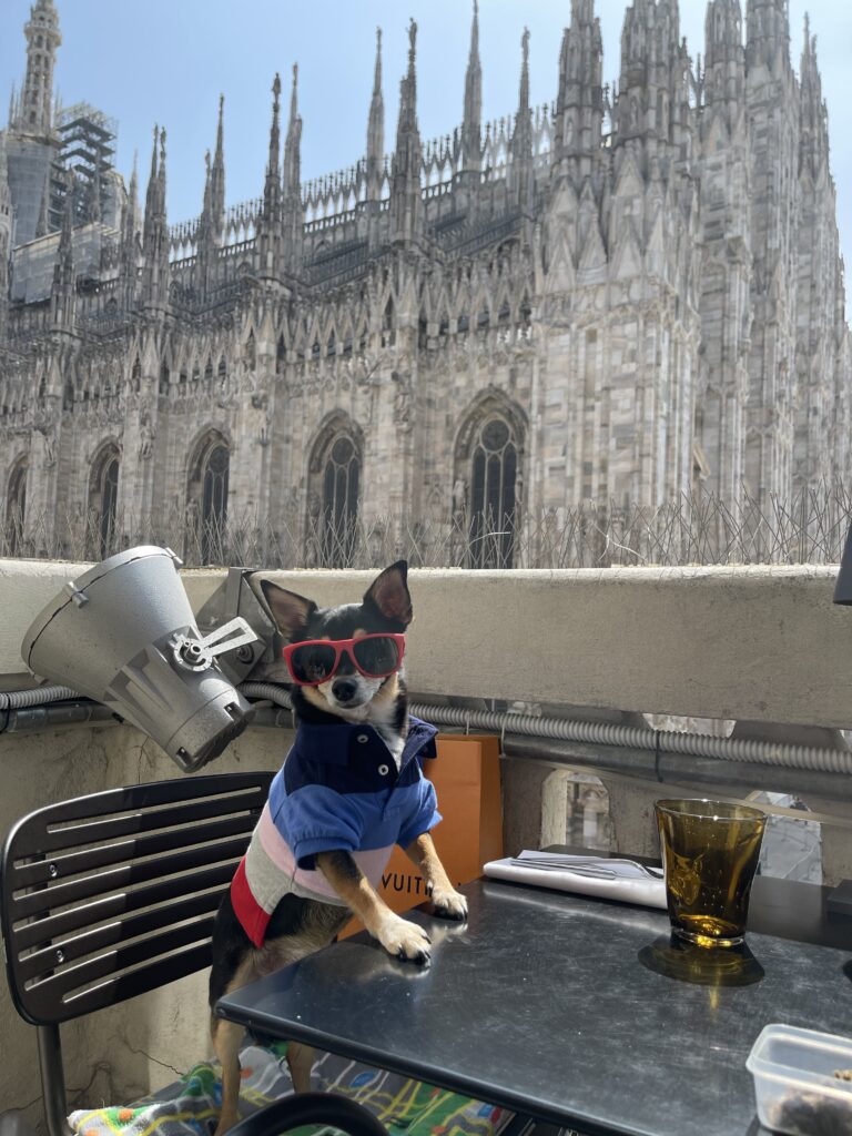 Because we based ourselves in Milan’s prestigious Quadrilatero della Moda (Fashion District), finding pet-friendly cafés, restaurants, and aperitivo spots was surprisingly effortless. This area — anchored around luxury boutiques and major tourist landmarks — is highly accustomed to international visitors, so dogs are generally welcomed with warmth and curiosity. The trade-off, of course, is price: dining and drinks here skew expensive, reflecting both the location and clientele.