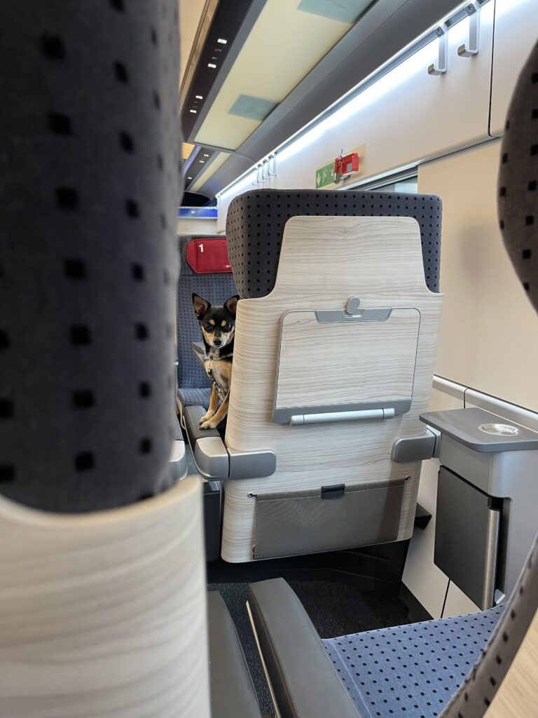 ✅ Pro Tip: EuroCity trains have comfortable seating, power outlets, and often a dining car — perfect if you’re traveling with a dog (Chance traveled in his carrier without issues).