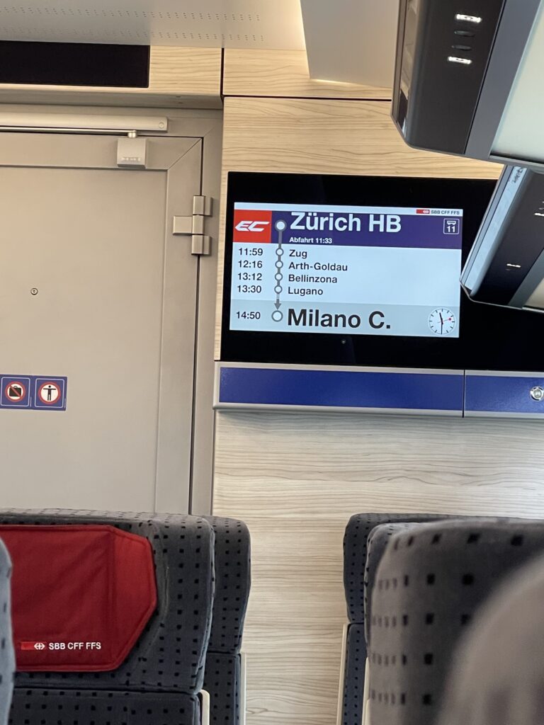 - Trains: EuroCity (EC), usually direct Zurich–Milan in ~3h 30min