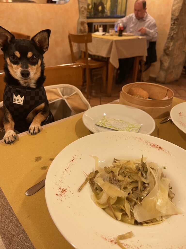 Venture beyond the fashion district into more residential neighborhoods, however, and the atmosphere shifts in the best possible way. You’ll discover lively, authentically local spots with lower prices, fuller tables, and fewer tourists — though pet policies can be less predictable since these establishments primarily serve residents rather than visitors. We personally love seeking out these neighborhood gems for a more immersive experience. Tip: Speaking Itallian is a huge plus and even a few vital words can earn you some smiles!