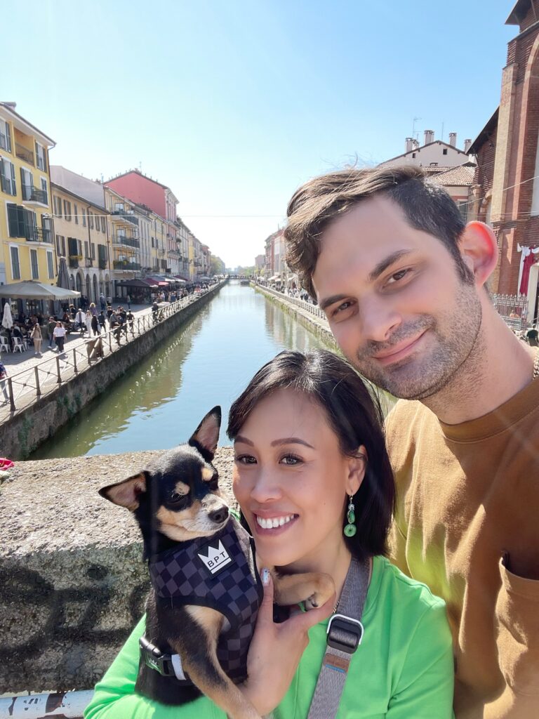 We first discovered Navigli in 2014 during our honeymoon tour — wandering the canals hand in hand, soaking in the romance of it all. Coming back a decade later, this time with our dog Chance, felt surreal. Same canals. Same golden light. But a completely new chapter. And honestly? It felt even more magical! ✨